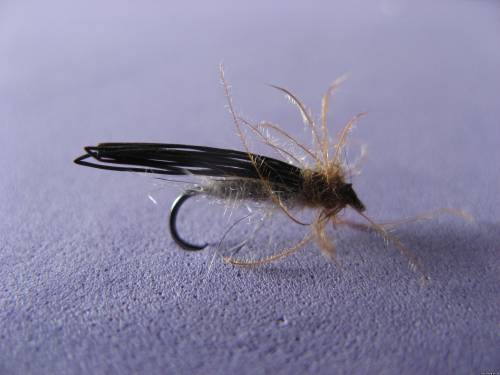 Stonefly Крючок: № 16 Монтажная нить: Uni 8/0 черная Тело: серый даббинг Крыло: ости лосиного меха, перегнутые пополам и закрепленные монтажной нитью Ножки: вырванные бородки CDC цена:10 грн. |