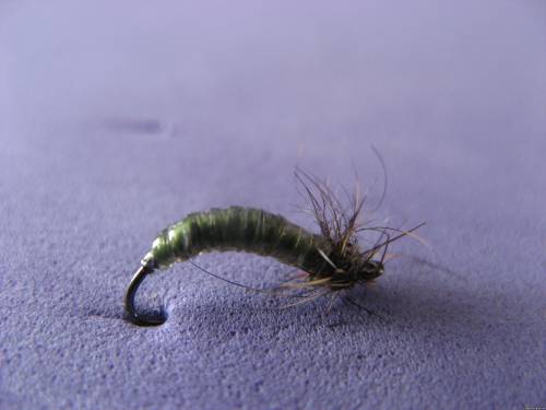Caddis Larva Крючок: № 14 в данном случае F 22 от Gamakatsu Монтажная нить: Uni 8/0 зеленая Подгрузка: свинцовая проволока Подложка: зеленая нить Тело: прозрачна пленка типа Body Stretch Ножки: темно-коричневый остистый даббинг с морды зайца цена:10 грн.