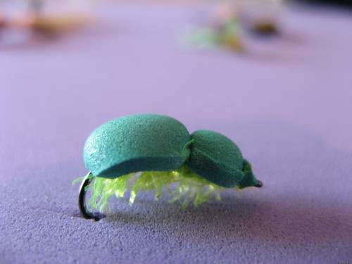 Крючок: № 8-14 Монтажная нить: Uni 8/0 зеленая Спинка: обыкновенная пена зеленого цвета Тело: зеленая микро синель Головка: пережатая пена цена:10 грн. |
