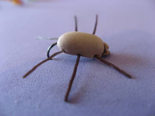Крючок: № 6-12 Монтажная нить: Uni 6/0 или 8/0 Спинка: коричневая пенка Тело: даббинг (как вариант намотка тонко отрезанной пены) Ножки: в идеале это три пары силиконовых ножек от Uni-Flexx , но вполне подойдет резиновая нить, при этом каждая ножка отдельно иголкой вводится в спинку жука. Головка: пережатая пена, подрезанная до нужной формы ножницами цена:12 грн.